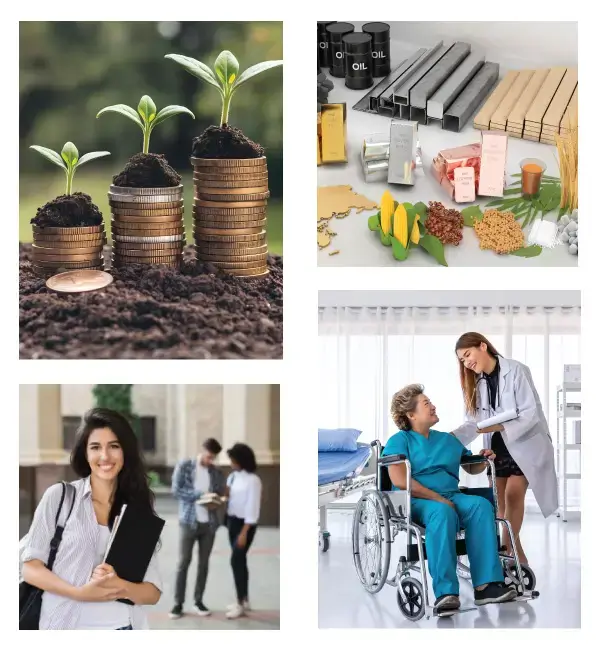 We believe in responsible investing, aligning innovation with global market demands. In Healthcare, we support advanced solutions improving quality of life. Through Education, we invest in knowledge-driven platforms shaping future generations. Agriculture initiatives enhance food security and rural development, while Metals & Minerals projects fuel industrial progress. Our Real Estate investments build modern infrastructure, and Commodities trading ensures global market connectivity.